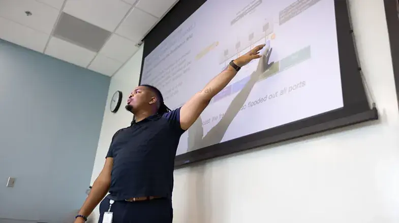 Kauba, who won a 2023-24 Excellence in Teaching award, says the passion he's found in teaching sometimes results in him overcommitting himself. He enlisted Elijah to help him teach his SEC-160: Security Administration I course in the Fall 2024 semester so he could spend more time getting the SENTINEL Cybersecurity Bootcamp up and running. He's the co-principal investigator on the U.S. National Science Foundation-funded project.