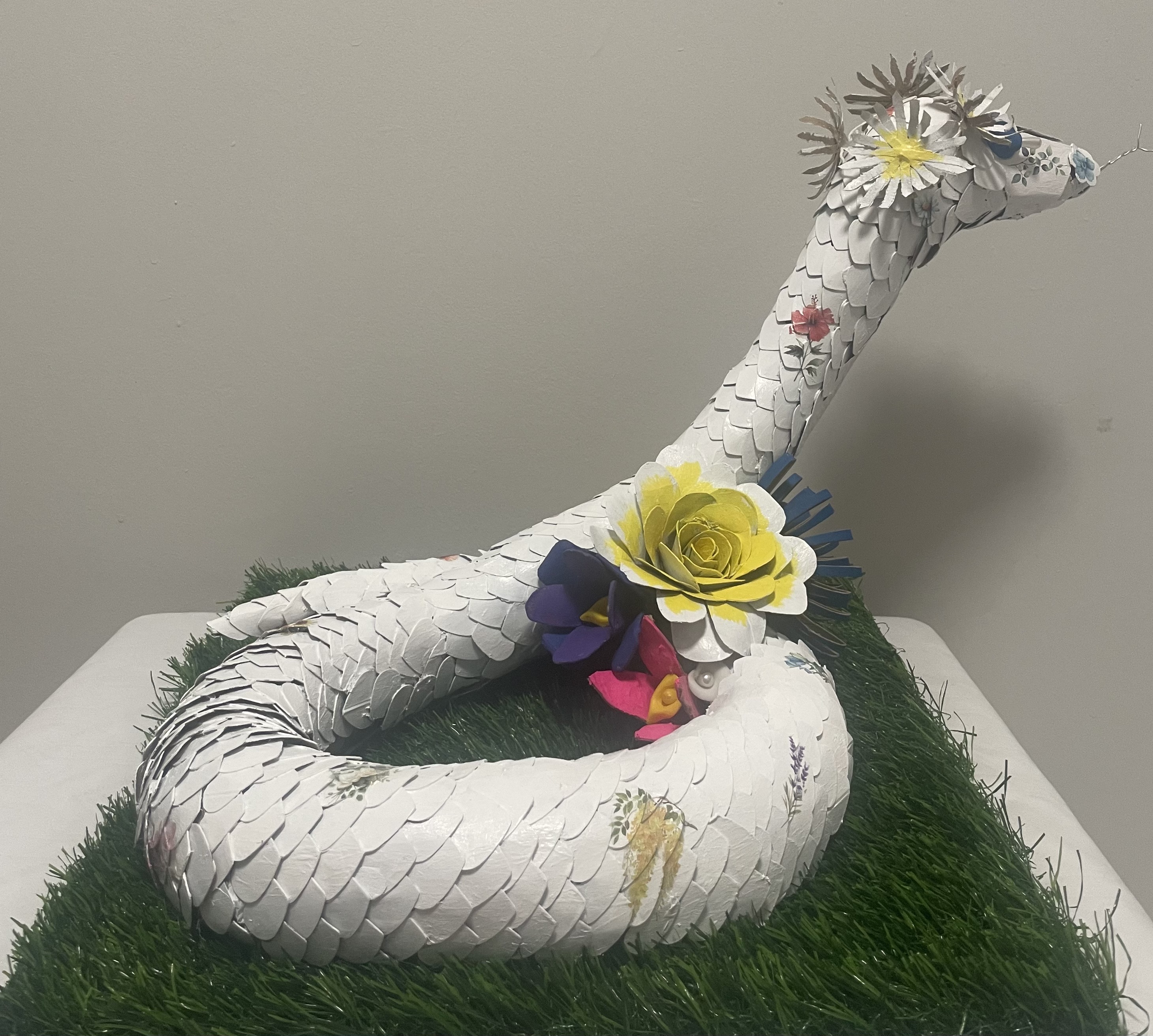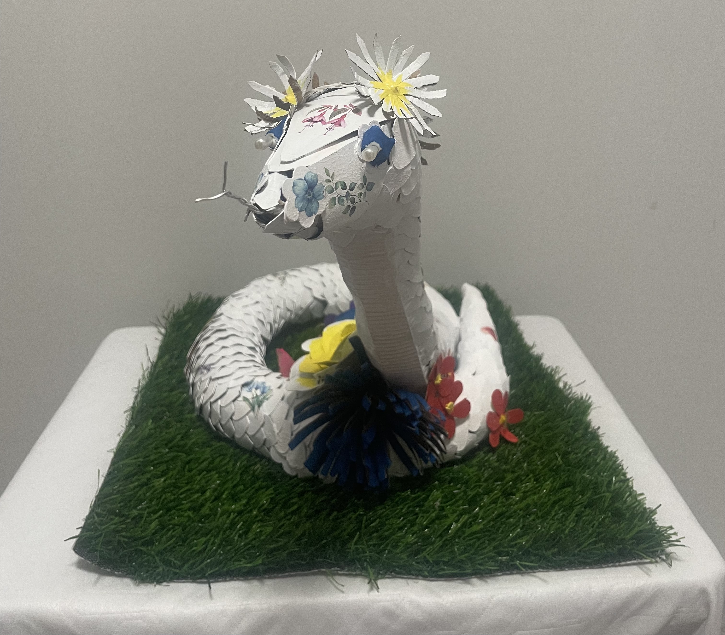 Betty White is a piece that with humor and whimsy. It was created to embrace non traditional interpretations of the nature of snakes.