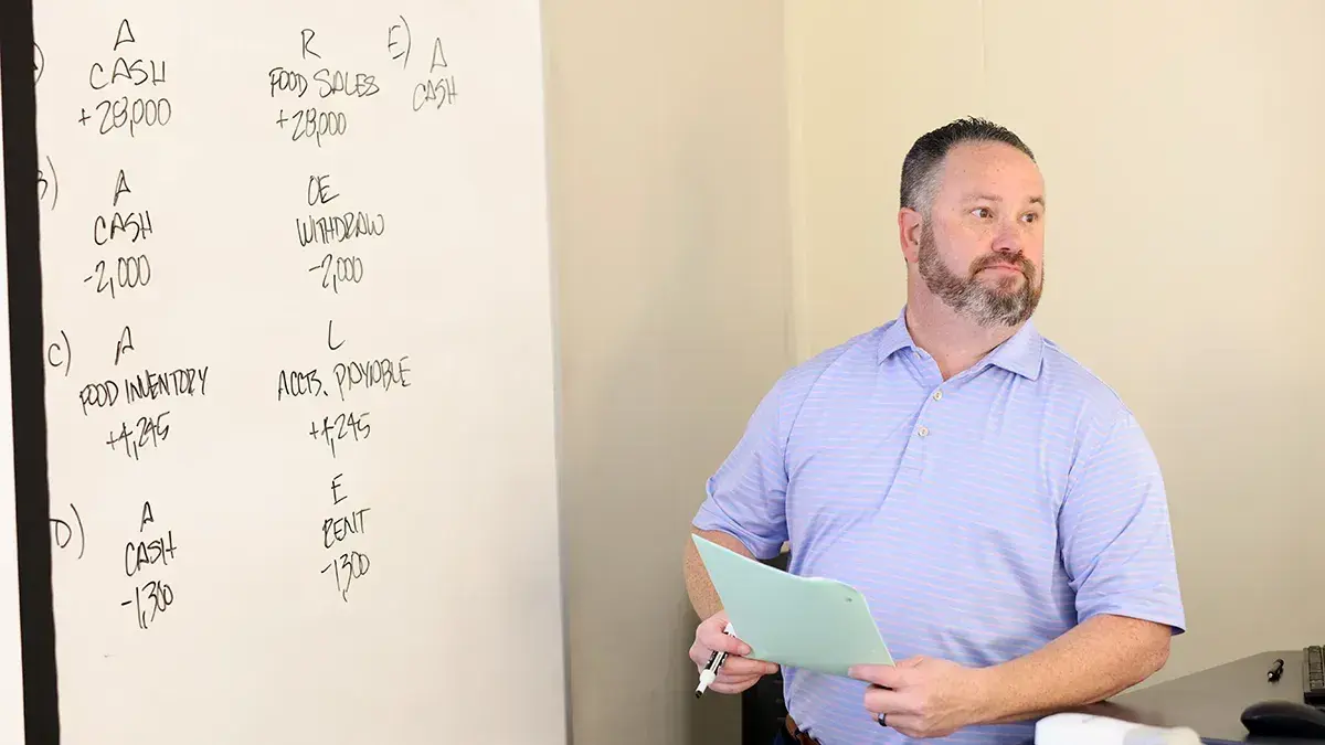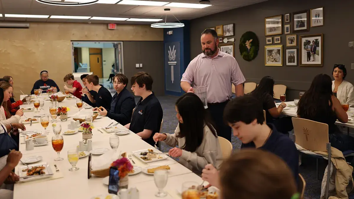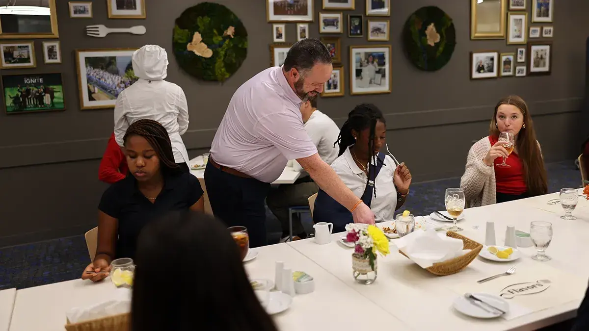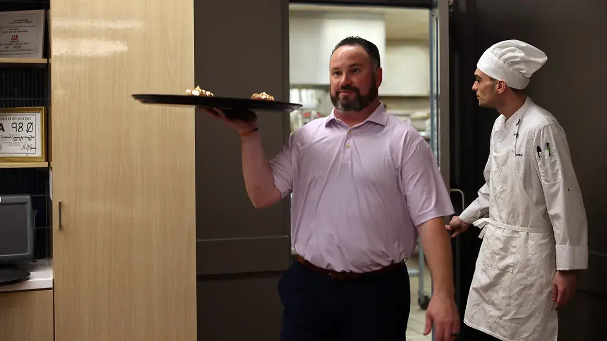 Tracey says he tries to teach "beyond the classroom," promoting traits like etiquette and punctuality in all interactions with students, including whenever he manages the service at Flavors, Wake Tech's student-operated restaurant.
