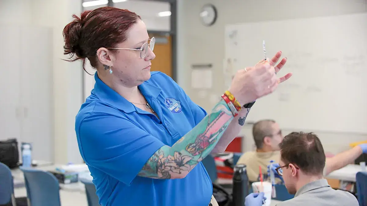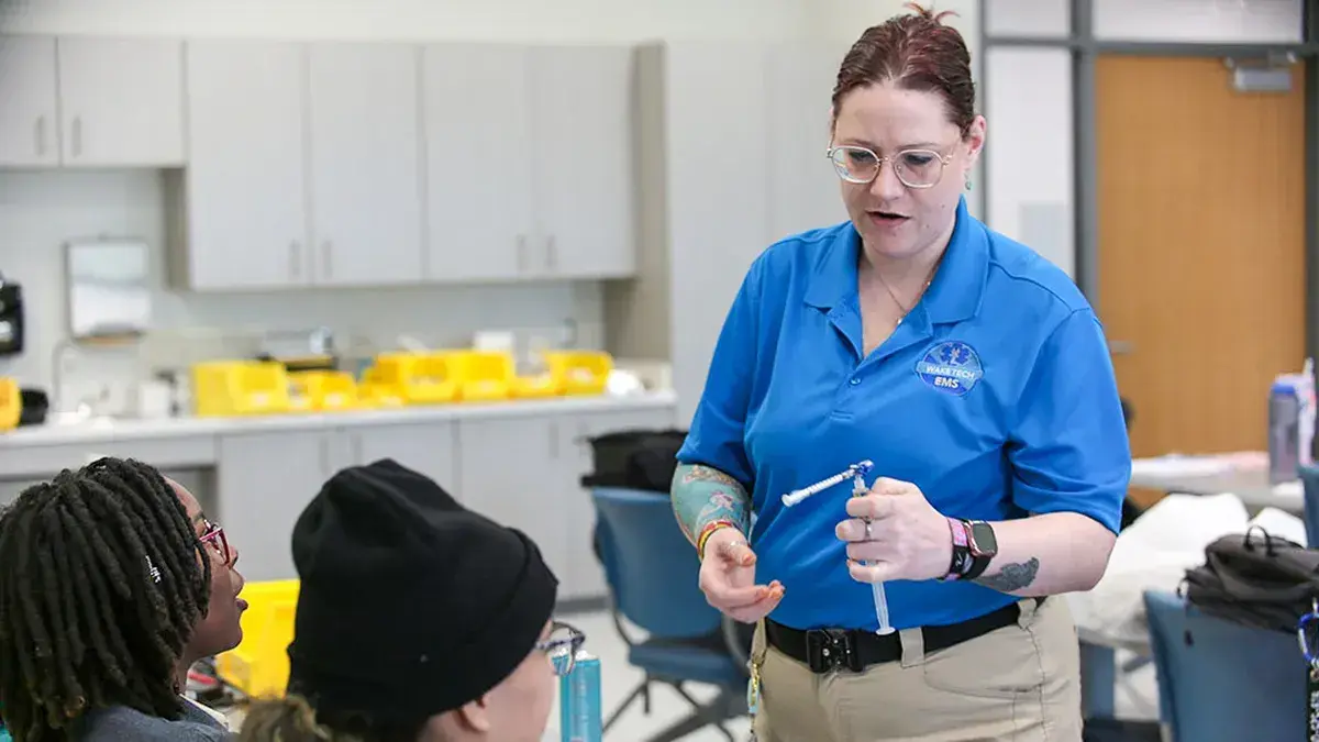 Hutto's classes cram the two years' worth of information from Wake Tech's Emergency Medical Science Associate in Applied Science (AAS) degree program into 10 months, so instruction comes at students with the force of a fire hose. But she says that, because all her students are already EMTs, she's simply "scaffolding" lessons on top of what they already know.