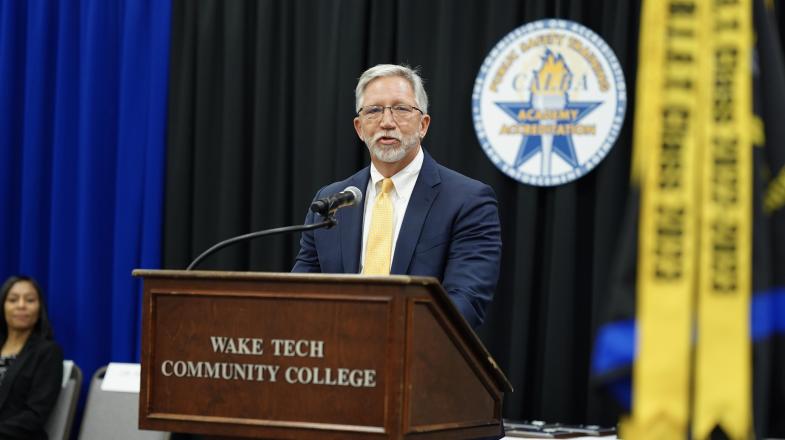 Wake Tech President Dr. Scott Ralls congratulated the cadets for their choice to join the law enforcement profession.