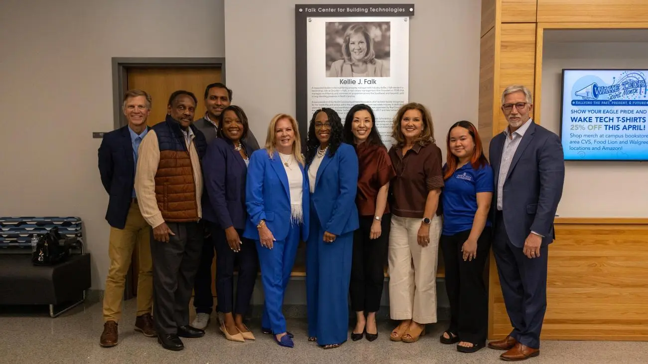 Falk's $1 million gift establishes a sustainable source of funding to support faculty through professional development, stipends and externships. It will also provide equipment and materials that strengthen hands-on learning for students in Wake Tech's skilled trades programs. With this addition to her prior endowment, it is now the largest endowed fund supporting skilled trades at Wake Tech.