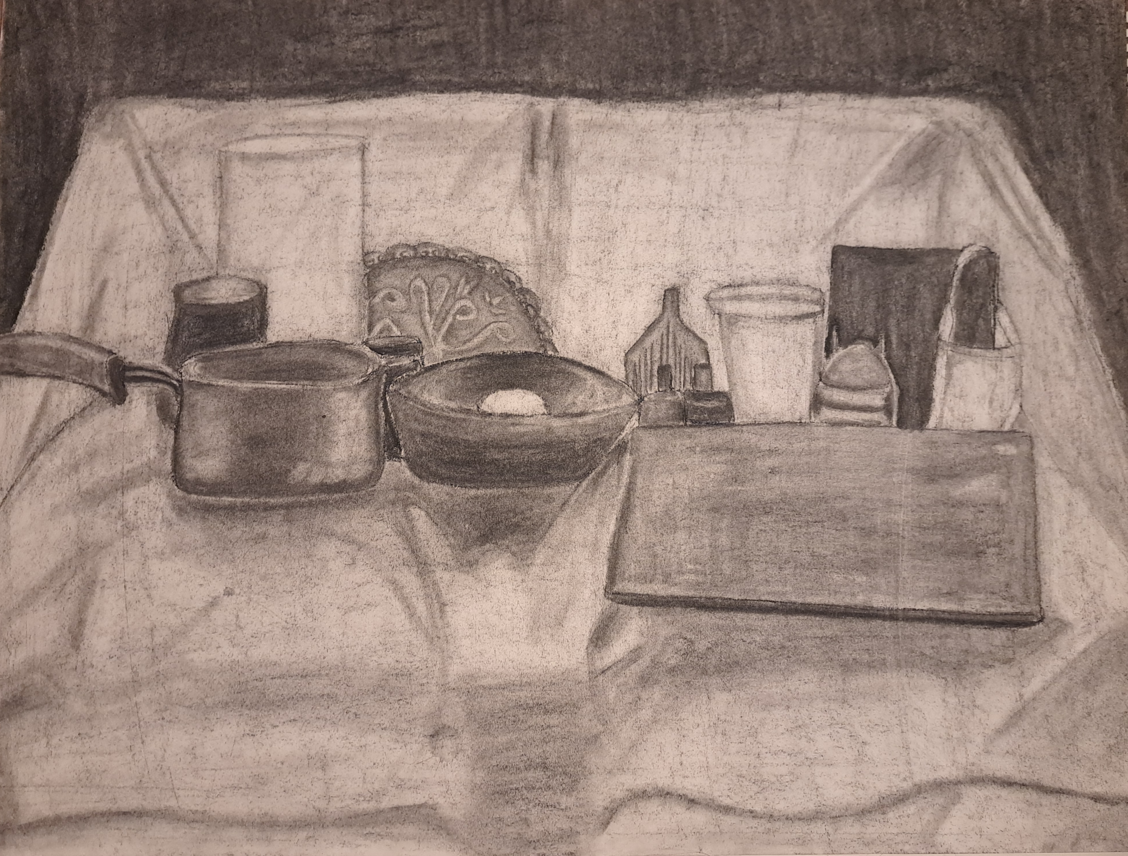 Vine charcoal, compressed charcoal, and charcoal pencil.